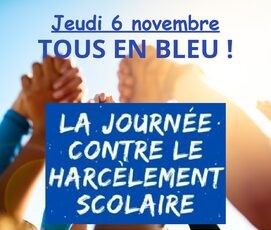 L'école Gabriel Deshayes se mobilise ce jeudi 6 novembre pour la journée Contre le Harcèlement Scolaire. Chaque élève se dotera d'un accessoire bleu en signe de soutien. Des activités sur ce thème auront lieu en classe. Enfin une danse collective sera réalisée avec tous les élèves de l'école.