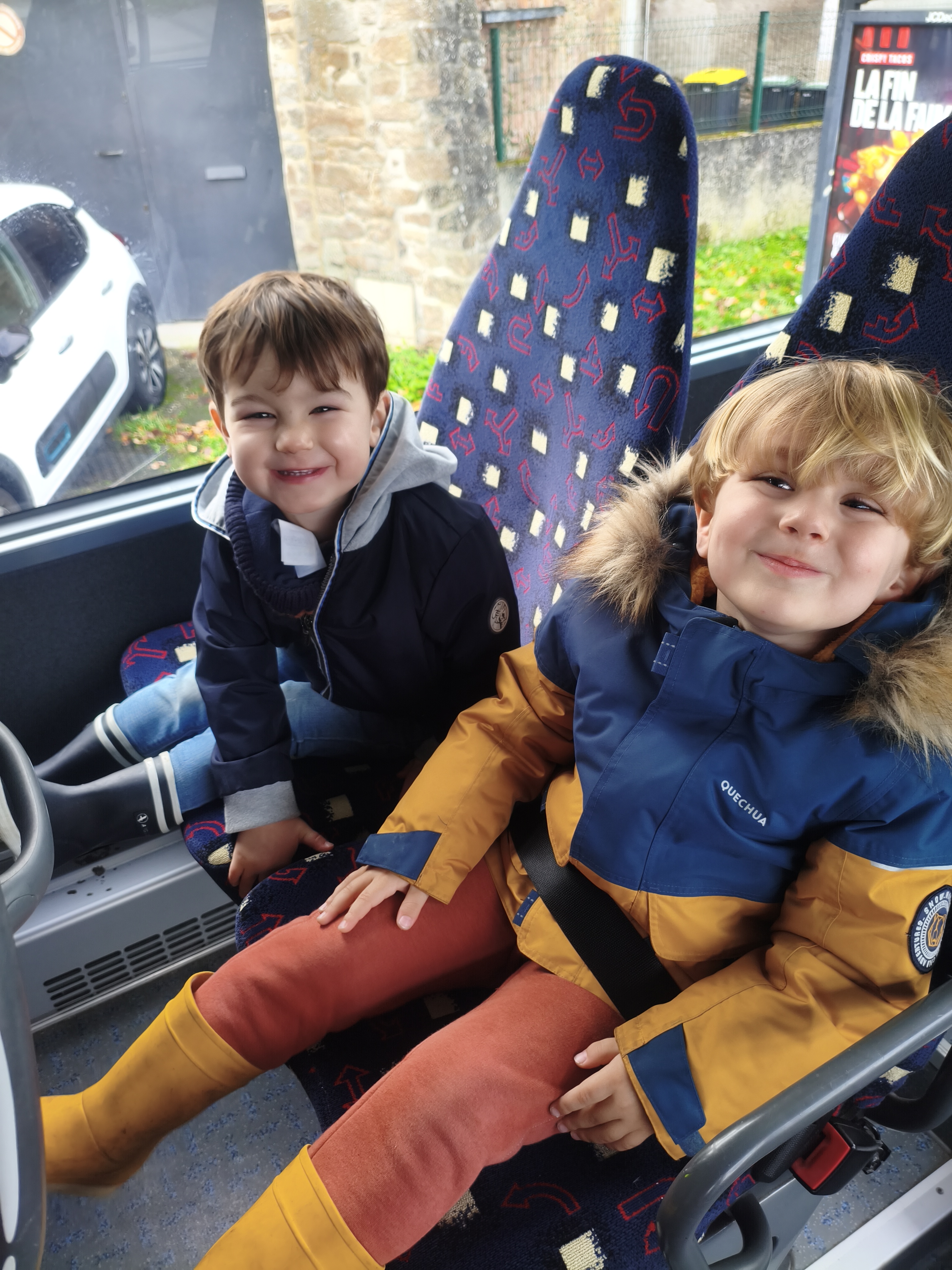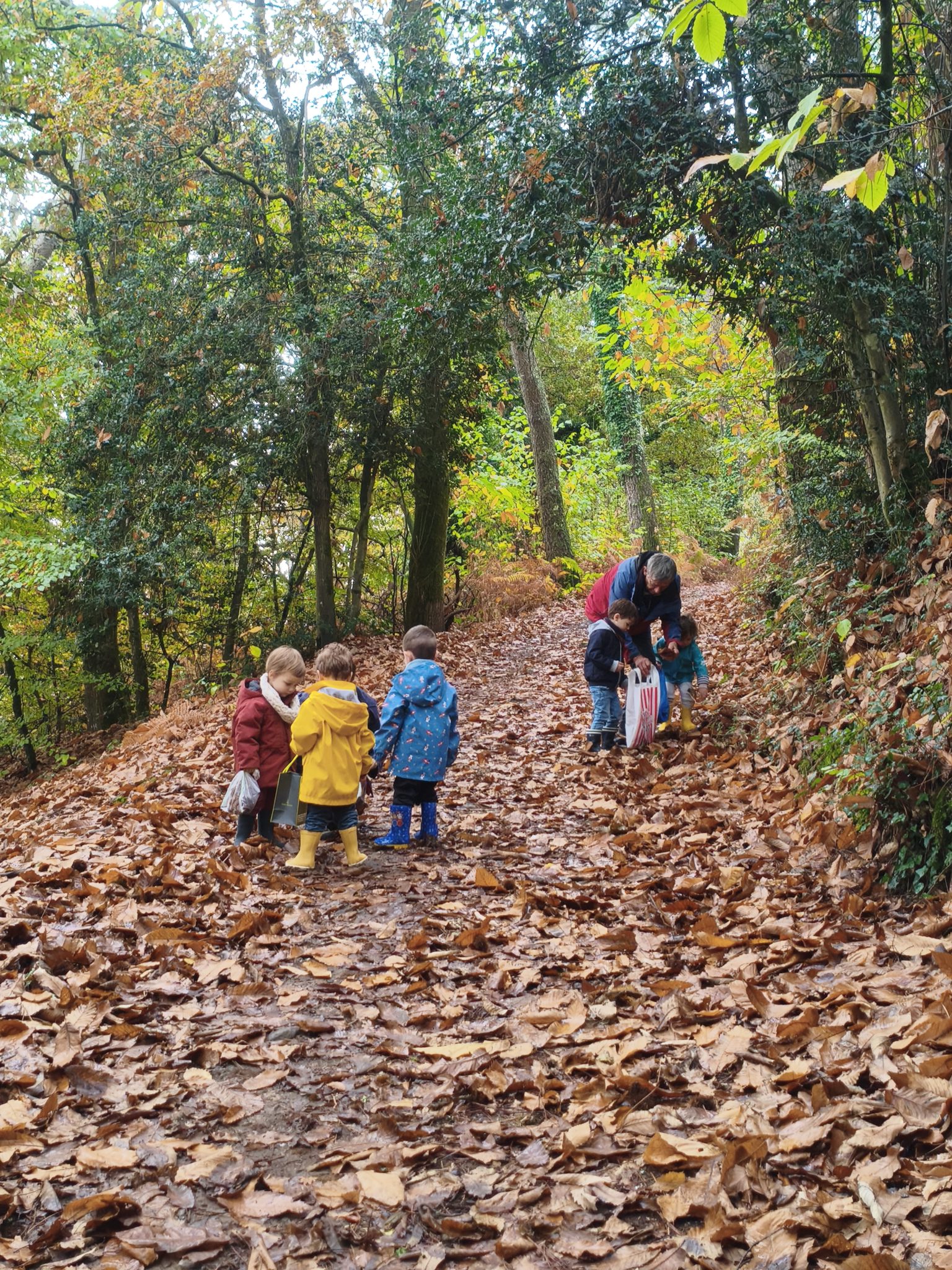 Vendredi 7 novembre, les élèves de la classe de TPS-PS de Mélanie, Isabelle et Marine, accompagnés des élèves de la classe de PS-MS de Nathalie et Aude, se sont rendus à la Petite forêt, à Auray.